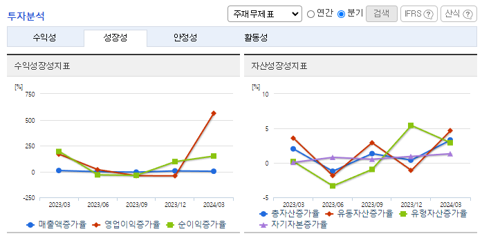-2024년 3월 전년동기 대비 연결기준 매출액은 0.4% 증가, 영업이익은 168.4% 증가, 당기순이익은 378.3% 증가. 매출원가 20.2%, 판관비 4.1% 감소하면서 매출액이 소폭 증가한 것에 비해 영업이익이 대폭 증가함. 2024년 역시 글로벌 온라인 플랫폼 중심으로 미국, 동남아 등 다변화가 이루어져 수출은 증가할 것으로 예상. 비건 및 클린뷰티 등에 대한 관심 증가에 따라 동사 '체이싱래빗' 브랜드 마케팅 노력 중.
