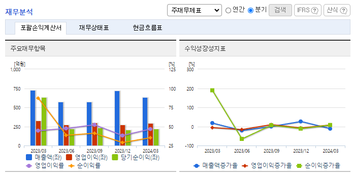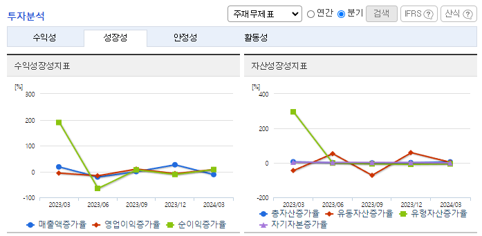 -2024년 3월 전년동기 대비 연결기준, 영업이익은 9.2% 감소, 당기순이익은 64.9% 감소. 동사의 1분기 영업수익은 전년 대비 13% 감소. 수수료 수익은 2022년부터 수주 급감 영향으로 14.3% 감소했고 이자수익은 금리 상승과 신탁계정대 증가로 12% 증가함. 총 자산 요주의 이하 여신 비율은 61%로 전년 말 대비 109%p 상승함. 또한 부채 비율은 52%로 업계 상위 수준 유지하고 있음.