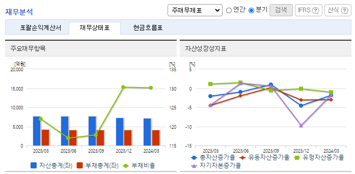 -2024년 3월 전년동기 대비 연결기준 매출액은 3.5% 감소, 영업손실은 45.6% 감소, 당기순손실은 17.9% 감소. 입체적 독서경험을 테마 도서에 적용한 '디즈니 인터랙티브 리딩' 시리즈 출시를 통해 시장의 큰 호응을 얻었음. 양질의 도서와 온·오프라인 학습 콘텐츠를 결합한 '웅진북클럽'과 AI 기술이 적용된 '웅진스마트올' 제품은 지속적인 개발을 통해 앞으로 스마트 시대의 교육시장 선도에 노력.