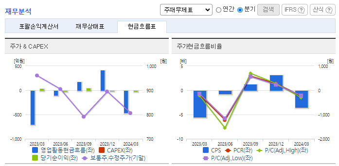 -2024년 3월 전년동기 대비 연결기준 매출액은 36.5% 감소, 영업이익 적자전환, 당기순이익 적자전환. 동사는 2024년 1분기 국내외 시스템 통합(SI) 사업의 수요가 감소하여 매출이 감소하고, 비용은 증가하여 영업이익이 큰 폭으로 감소하였음. 동사는 2024년 3월 교육행정데이터통합관리시스템 인프라 구축하는 수주를 받아 향후 실적 개선에 긍정적으로 작용할 것이 기대됨.