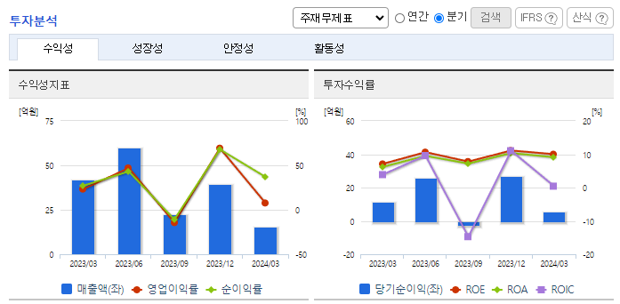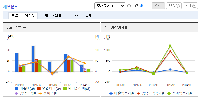 -2024년 3월 전년동기 대비 별도기준 매출액은 63.4% 감소, 영업이익은 88% 감소, 당기순이익은 50% 감소. 동사의 동결건조기 LP Model 사업부문 등 매출이 전년동기 대비 감소하고 원가가격 하락과 판관비 하락에도 인건비 등 비용의 증가로 영업이익이 전년동기 대비 약 88% 감소함. 바이오 시장의 성장이 가속화되면서 삼성전자, 엘지전자, 한화 등 국내 유수의 대기업 및 바이오센터로부터 동결건조기의 수주가 이어짐.