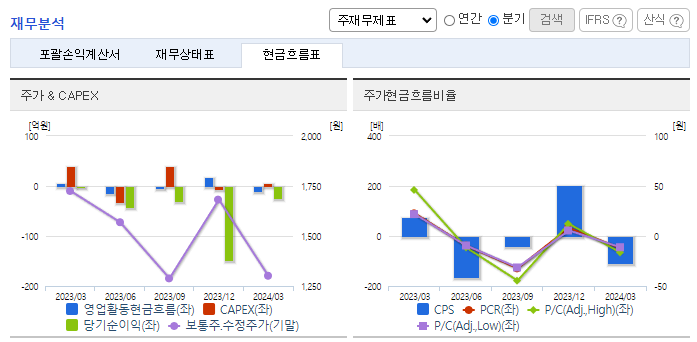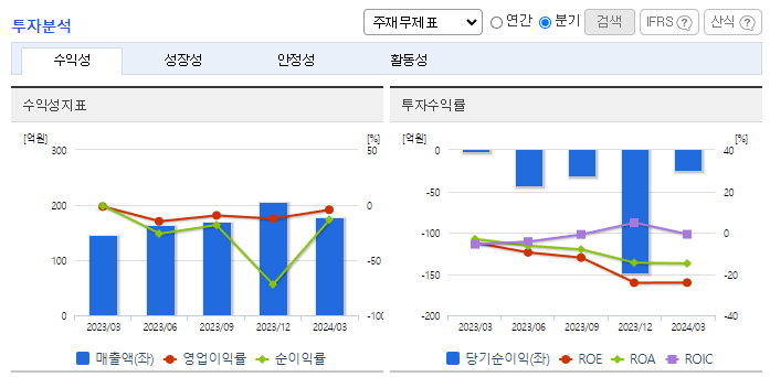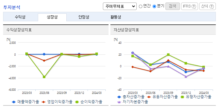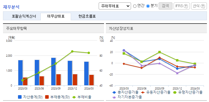 -2024년 3월 전년동기 대비 연결기준 매출액은 21.4% 증가, 영업손실은 265.9% 증가, 당기순이익 적자전환. 당기손익-공정가치측정금융자산평가손실 851,368(천 원) 및 거래일이연손익상각 447,459(천 원)이 발생함에 따라 금융비용이 증가함. 레모나 톡톡, 레모나 키즈, 레모나 젤리 등 레모나 라인업 식품이 꾸준한 성장을 보이며 추가매출 상승 요인으로 작용될 것이라 기대됨.