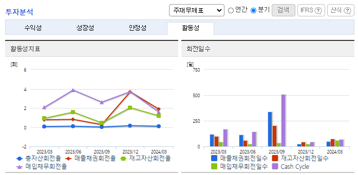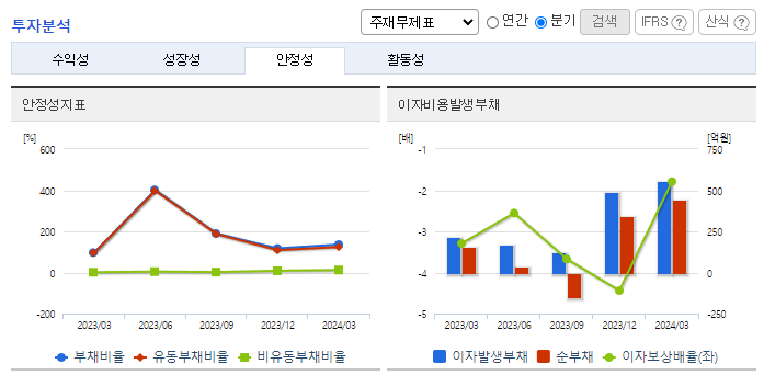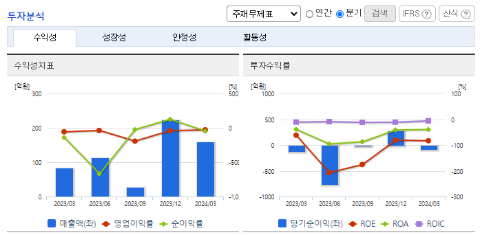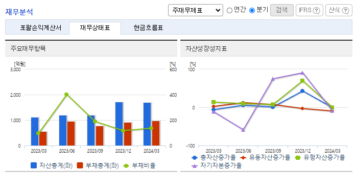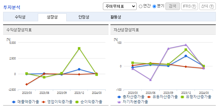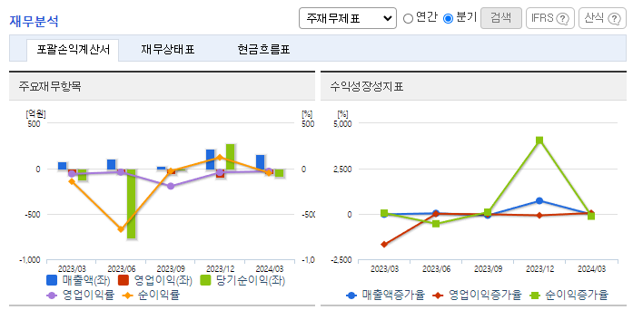 -2024년 3월 전년동기 대비 연결기준 매출액은 91.2% 증가, 영업손실은 4.2% 감소, 당기순손실은 36.3% 감소. 소방차의 수출 증가에도 내수 감소 하락으로 소방사업부문 매출은 전년동기 대비 감소했으나 신규 사업인 2차 전지 부문의 성장세로 외형이 성장함. 각종 소방 관련 법규의 개정이 강화됨에 따라서 소방산업은 점점 더 성장하고 있으며 신규 사업인 2차 전지 제품 양산에 따른 매출이 본격화됨에 따라 외형 확장이 기대됨.