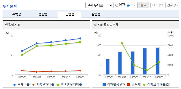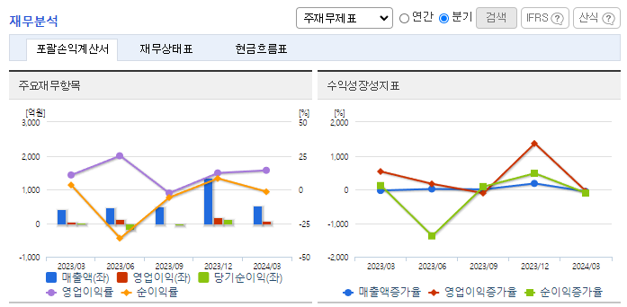 -2024년 3월 전년동기 대비 연결기준, 영업이익은 64.5% 증가, 당기순이익은 99.2% 감소. 정비사업 수탁 시장 내 점유율 1위 사업자로 70%의 점유율을 기록하고 있음. 도시정비 사업의 꾸준한 수주로 매출 수준 꾸준히 유지함. 1분기 역시 양호한 실적을 기록하였으나, 지분법손실로 당기순이익 적자전환함. 주택 분양경기 저하로 인해 이익창출력 회복에 어려움이 있을 것으로 예상함.