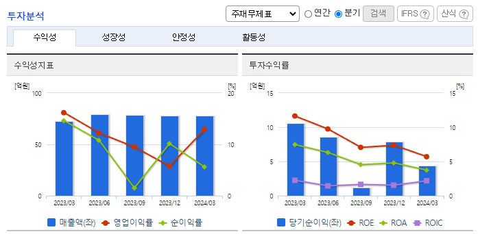 -2024년 3월 전년동기 대비 연결기준 매출액은 7.5% 증가, 영업이익은 14.1% 감소, 당기순이익은 57% 감소. 주력 제품인 국소지혈제 판매가 호조를 보이며 외형 성장을 견인함. 강력한 영업망을 기반으로 지속적 성장세가 이어지고 있음. 의약품 유통 및 제조, 심혈관 중재시술 등 다양한 분야에서 경쟁력을 강화하고 있으며, 인트로바이오파마 인수를 통해 올해 큰 폭의 외형 성장 및 수익성 개선을 기대함.