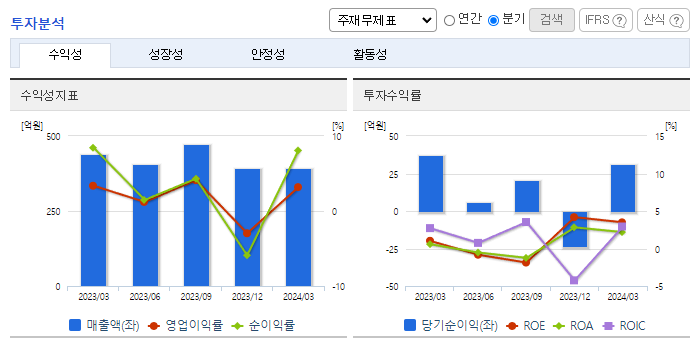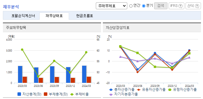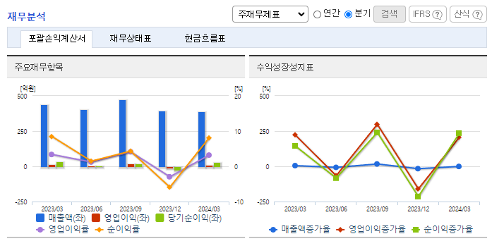 -2024년 3월 전년동기 대비 연결기준 매출액은 10.6% 감소, 영업이익은 15.4% 감소, 당기순이익은 14.5% 감소. 지속적인 LED 시장 성장에도 불구하고 후발업체들의 과도한 설비투자로 인한 공급이 수요를 초과하는 상황이 발생되고 있음. 2016년 이후 LED TV 대형화에 따른 고화질, 고성능 제품에 대한 시장 수요 증가와 함께 동사의 생산공정의 변화를 통해 매출증가 및 원가구조 개선을 진행 중에 있음.