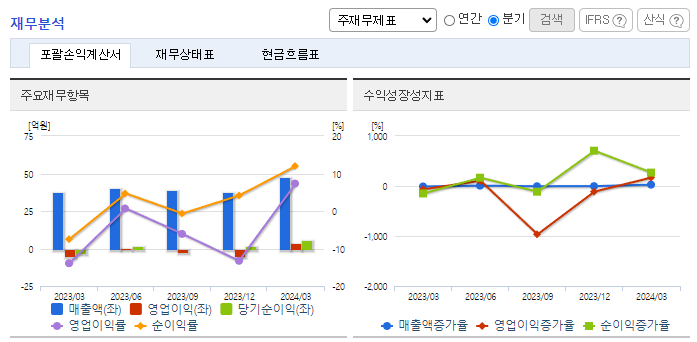 -2024년 3월 전년동기 대비 연결기준 매출액은 26.5% 증가, 영업이익 흑자전환, 당기순이익 흑자전환. 고객의 소프트웨어 사용 방식 또한 '구매-소유' 방식에서 '구독-사용' 위주의 클라우드 방식으로 변화하며 업무환경의 시공간적 제약의 해소와 비용 절감 등의 효과를 누리고 있음. 동사의 제품은 비금융권 채택도 확산되고 있으며 기존의 코딩 방식으로 IT 시스템을 구축 및 운영하고 있는 고객이 많아 지속적인 시장 확대가 기대됨.
