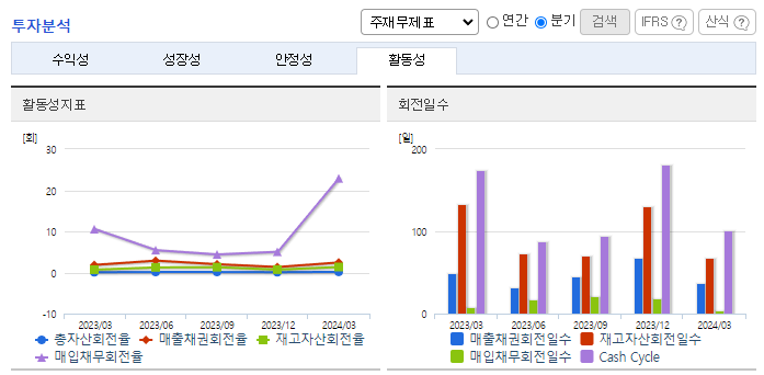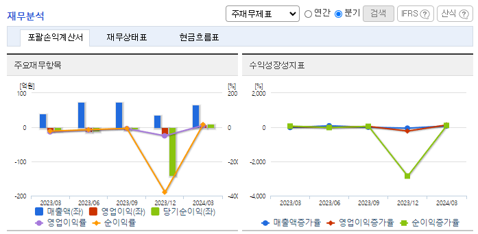 -2024년 3월 전년동기 대비 별도기준 매출액은 66.9% 증가, 영업이익 흑자전환, 당기순이익 흑자전환. 수출이 60% 정도를 차지하고 있으며, 또한 Global 다국적 제약회사와 독점공급 형식을 가지고 있으므로 시장 환경이 완화됨에 따라 매출이 상승하여 수익성이 크게 증가하였음. 대용량 반응기와 특화된 설비를 강점으로 한 다국적 회사의 CMO 사업은 동사의 주요 사업 전략임.