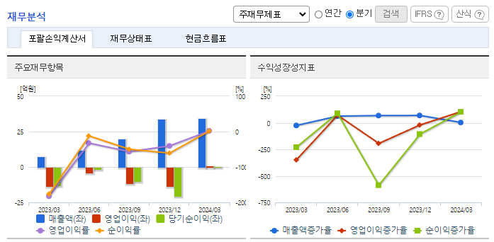 -2024년 3월 전년동기 대비 별도기준 매출액은 374.1% 증가, 영업이익 흑자전환, 당기순이익 흑자전환. EPO의약품 판매시장 확대를 위해 2024년~2025년 중에 사우디아라비아(2023년 품목허가 완료)와 튀르키예, 태국, 베트남, 등 국가 신규 진출을 준비 중임. 황반변성, 황반부종등의 치료제인 Aflibercept 바이오시밀러 제품은 바이오시밀러 제품으로 개발하고 있음.