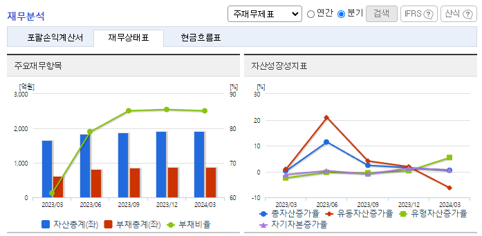 -2024년 3월 전년동기 대비 연결기준 매출액은 21.7% 증가, 영업이익은 9.9% 감소, 당기순이익은 287.7% 증가. 금호건설과 1,109억 원 규모 공사계약을 신규로 체결하였으며 지속적인 수주를 이어오고 있음. 2024년 1분기 수준잔고는 5,610억임. 국제 원자재 가격의 상승과 국내 건설 투자 증가에 따른 건설자재 수요 증가로 인해 주요 건설자재 가격 또한 증가로 비용이 소폭 증가함.