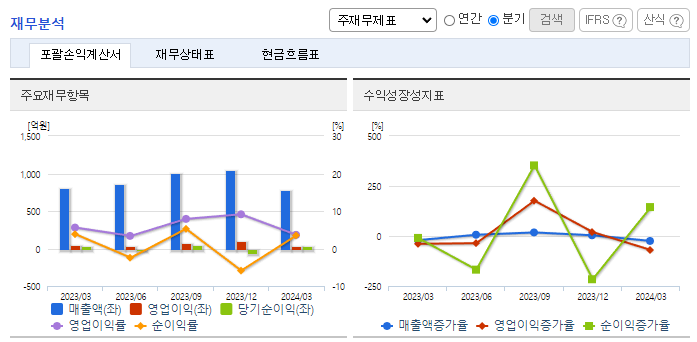-2024년 3월 전년동기 대비 연결기준 매출액은 2.3% 감소, 영업이익은 36.3% 감소, 당기순이익 10.3% 감소. 2024년 1분기 기준, 전기에 300억 원의 규모의 백신공장 완제라인 증축 시설투자를 결정하여 당해연도 하반기를 목표로 현재 증축공사를 진행 중. 백신 완제품 포장 설비보유를 통해 원가를 절감하고 규모의 생산능력을 확보하여 독감백신 시장의 국내외 시장매출 증대에 노력함.