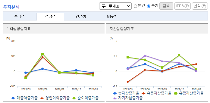 -2024년 3월 전년동기 대비 연결기준 매출액은 1.9% 감소, 영업이익은 24.8% 증가, 당기순이익은 35% 증가. 시멘트 사업부문은 매출이 3.6% 감소하였으며 제지부문은 2.6% 감소함에 따라 전체 매출액이 감소함. 효율적인 원가 관리를 통해 영업이익은 증가함. 2024년도에는 건설경기 침체로 인한 출하량 감소와 철도 수송능력 저하, 환경규제대응을 위한 설비투자로 인해 실적 불확실성의 가능성이 있음.