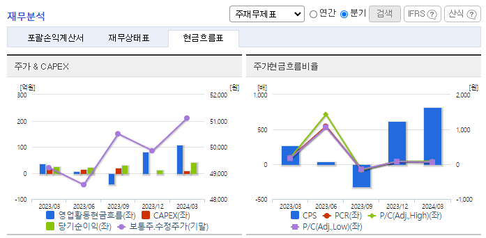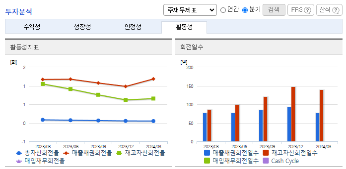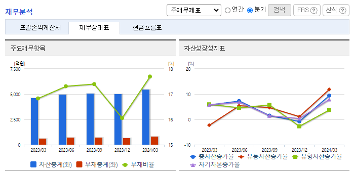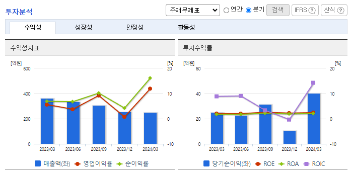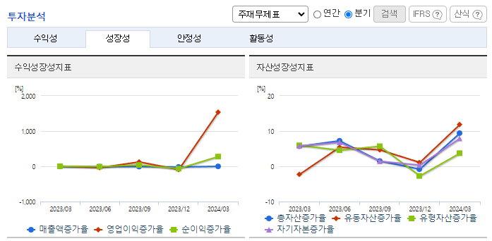 -2024년 3월 전년동기 대비 별도기준 매출액은 31.3% 감소, 영업이익은 46.8% 증가, 당기순이익은 60.4% 증가. 매출이 감소하였음에도 메출원가율 하락으로 영업이익은 증가함. 동사의 경영진은 소비패턴의 변화와 소재 다양화에 따른 수요감소에 선제적으로 대응하고자 패션사업부분을 과감하게 축소했음. 사업 구조조정 후 확보한 역량을 높은 자동차 사업 부분에 재배치하여 시장 확대에 노력 중.