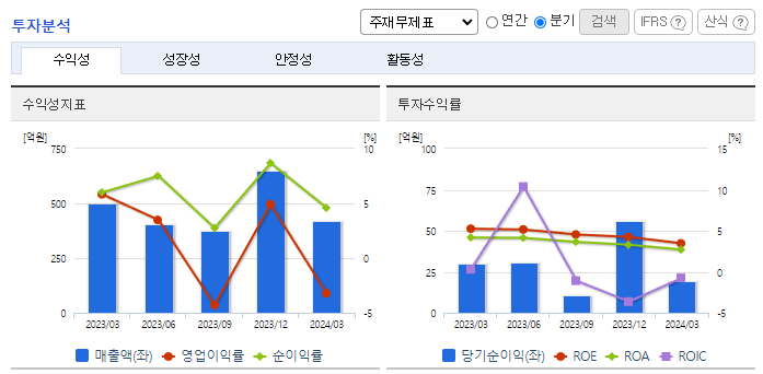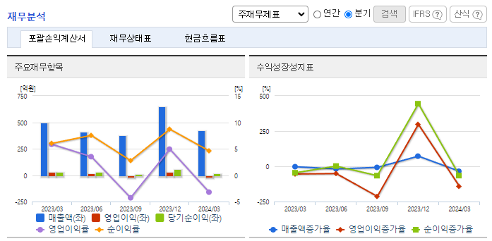 -2024년 3월 전년동기 대비 별도기준 매출액은 15.8% 감소, 영업이익 적자전환, 당기순이익은 35.7% 감소. 주 납품처는 현대자동차이며 수출 비중이 60% 이상을 차지함. 글로벌 자동차 시장의 성장 둔화가 심화되었고 원가 상승이 악영향을 미침. 국내 자동차산업은 SUV 라인업 확대 및 대형화, 친환경 전기차의 성장, 기술고도화로 인한 자율주행차의 가속화가 지속될 것으로 전망.