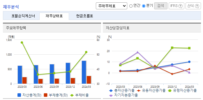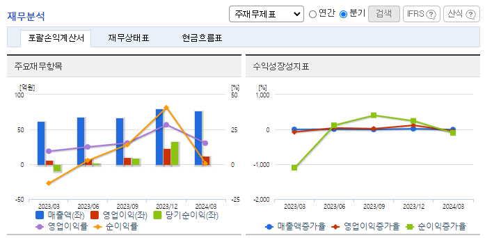 -2024년 3월 전년동기 대비 연결기준 매출액은 23.2% 증가, 영업이익은 98.6% 증가, 당기순이익 흑자전환. 23년 4월부터 생산(판매)을 개시한 SPINE은 척추질환에 사용되는 임플란트로, 24년 1분기 기준 40백만 원의 매출을 기록함. 22년 9월부터 수행한 연구과제명 '무릎 반월연골판 파열 재건을 위한 봉합 장치 개발'을 24년 8월까지 수행 계획임.