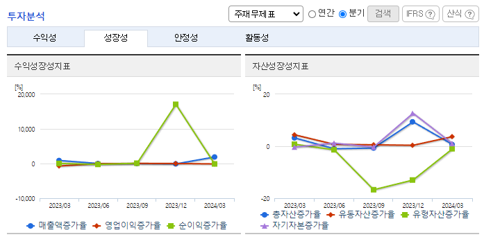 -2024년 3월 전년동기 대비 연결기준 매출액은 12.7% 증가, 영업손실은 16.4% 증가, 당기순손실은 17.3% 감소. 동사의 자동차용 전구류, 전자기기의 제조, 판매 및 의약품 매출이 증가했으나 원가가 상승하고 판관비 등 비용이 증가하면서 손실폭이 증가됨. 2024년 1분기 동사는 에스에프이노텍과 경영효율성 증대 및 사업경쟁력 강화를 위해 소규모 합병계약을 맺음.