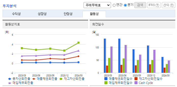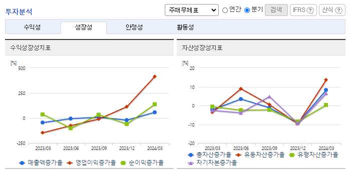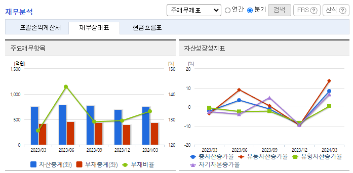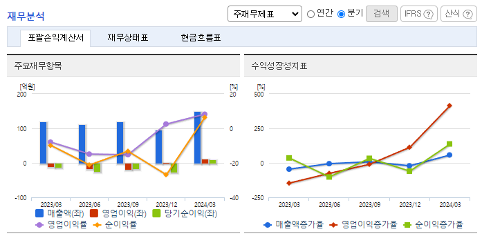 -2024년 3월 전년동기 대비 연결기준 매출액은 25.9% 증가, 영업이익 흑자전환, 당기순이익 흑자전환. OLED(유기발광다이오드) 디스플레이 제조장비 사업 호조에 따른 실적 개선에 따라 흑자전환에 성공하였음. 이미 확보한 수주 잔고와 추가 수주 확대를 바탕으로 실적 성장세를 지속해 나갈 것으로 예상됨. 애플, 삼성전자 등 업계 선두기업들이 노트북 등 OELD 채택을 확대함에 따라 동사의 장비 수주도 확대될 것으로 전망됨.