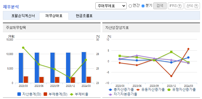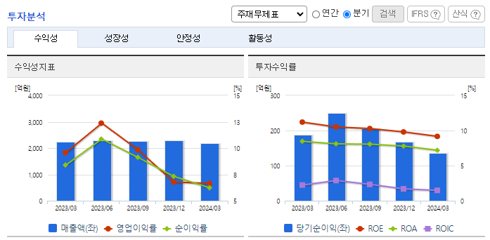 -2024년 3월 전년동기 대비 연결기준 매출액은 2.6% 감소, 영업이익은 32.3% 감소, 당기순이익은 27.7% 감소. 내수 매출 2.3% 감소, 해외 매출 0.2% 감소함에 따라 전체 매출이 감소하였으나 판관비는 증가함에 따라 영업이익 감소함. 2026년 완공을 목표로 생산능력 확대를 통한 경쟁력 강화를 위해 1,951억 원 규모 골판지 제조공장 신설투자 진행 중임.