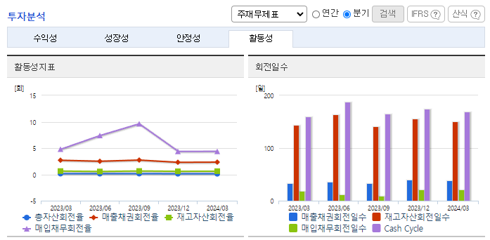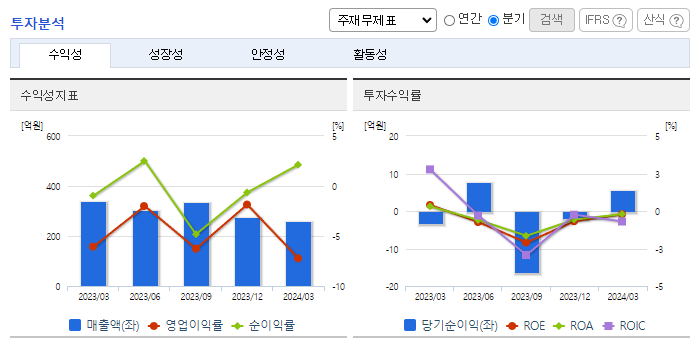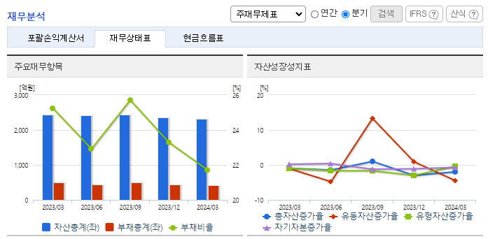 -2024년 3월 전년동기 대비 연결기준 매출액은 21.1% 감소, 영업손실은 70.6% 증가, 당기순이익 흑자전환. 원자재가격 상승과 수급 불안 및 전력료, 스팀료 등 에너지 가격 상승으로 인하여 매출원가율이 증가함에 따라 영업손실이 증가함. 환율 급등에 따라 보유한 달러채권 및 달러예금 등의 미달러 금융자산 평가이익 증가 등으로 인하여 당기순이익은 흑자전환함.