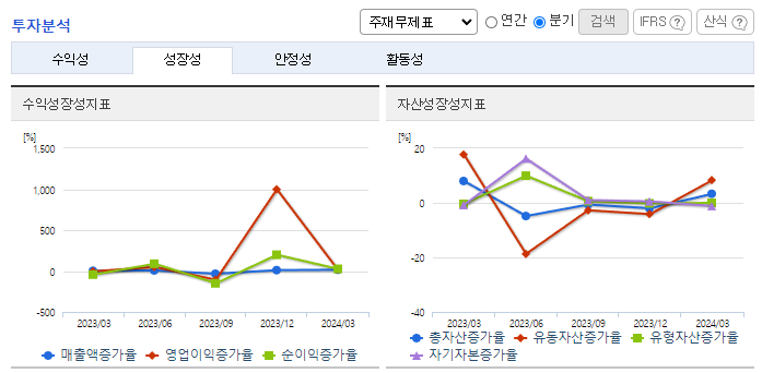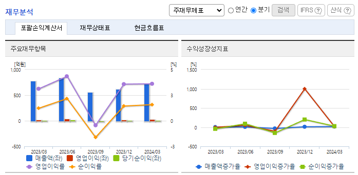 -2024년 3월 전년동기 대비 별도기준 매출액은 7.8% 감소, 영업이익은 6.6% 증가, 당기순이익은 17.9% 증가. 2024년 1분기 기준, 농기계, 자동차 및 산업기계 전체적으로 대외적 요인으로 매출 감소하여 전체적으로 -61억 감소하였음. 국내유일의 동력전달장치전문 단일업체로 규모나 기술력 등 타 경쟁업체에 비하여 경쟁력 우위를 차지하고 있으며 수요 측에서 요구되는 어떠한 체제로도 전환 용이한 형태를 갖춤.
