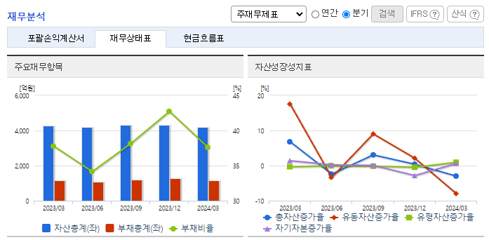 -2024년 3월 전년동기 대비 연결기준 매출액은 2.9% 증가, 영업이익은 2.4% 증가, 당기순이익은 37% 감소. 현재 수출 중인 구 합작관계사인 우즈코람(우즈베키스탄)을 통해 신규사업 추진 및 우즈벡에서 추진 중인 자동차 신규모델 N150, J200, M300에 동사가 참여 중임. 출시한 쉐보레 신형 SUV 트랙스(TRAX) 범퍼에 대한 3년 물량을 확보한 상태로 현재 월평균 1만 대 이상을 공급하고 있음.