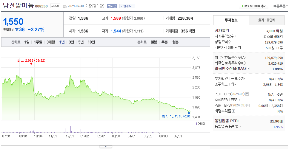 남선알미늄 가치 분석