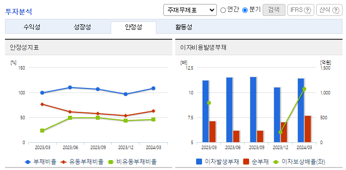 -2024년 3월 전년동기 대비 연결기준 매출액은 1.4% 증가, 영업이익은 24% 증가, 당기순이익은 15.3% 증가. 배터리 소재 관련 미국, 헝가리, 말레이시아 해외수주와 사우디 네옴시티의 근로자 숙소단지 용역 추가수주, 쿠웨이트의 압둘라 신도시 개발 프로젝트의 PM 등 수주확대 중임. 국내 건설경기 침체에도 해외사업의 호조가 이어졌으며 반도체, 2차 전지 등 하이테크 분야 매출이 확대되어 안정적인 실적 성장세를 유지함.