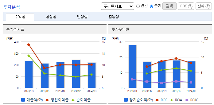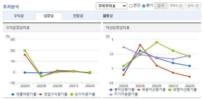-2024년 3월 전년동기 대비 연결기준 매출액은 5.2% 감소, 영업이익은 33.9% 감소, 당기순이익은 37.7% 감소. 미국, 러시아, 인도네시아 등 국가로의 수출판매를 병행하고 있으나, 수출실적 3% 미만임. CE인증획득으로 유럽 및 중동시장도 개척할 예정임. 도시가스 이용에 배관망은 필수적이며, 그 배관에 필수적으로 사용되는 배관용 밸브의 경우 점진적으로 국내 기술들의 연구개발로 국산화되어 가고 있어 수요확대가 예상됨.
