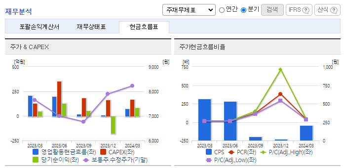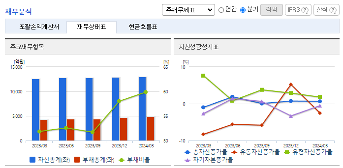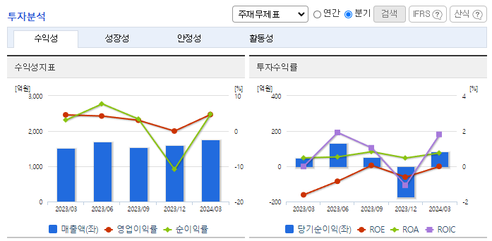 -2024년 3월 전년동기 대비 연결기준 매출액은 15.3% 증가, 영업이익은 17.9% 증가, 당기순이익은 290.3% 증가. 동사의 수익은 계열회사의 성장과 함께 증가하며, 이를 위해 동사는 지주회사로서 자회사의 기업가치 상승에 사업역량을 집중하고 있음. 자회사 콜마비앤에이치 실적이 개선된 영향으로 영업이익이 증가하였음. 또 유산균 등 건기식 해외 수출 물량이 회복되고 있고 있음.