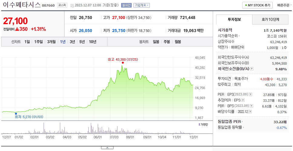 이수페타시스 주가 전망 및 기업분석, 주가 예측