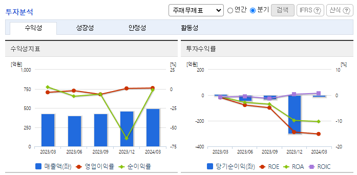 -2024년 3월 전년동기 대비 연결기준 매출액은 16.5% 증가, 영업이익 흑자전환, 당기순이익 적자전환. 동사는 스토리타코와 함께 여성향 장르 웹툰을 기반으로 한 수집형 RPG 공동 개발 계약을 체결함. 2026년 출시를 목표로 BL 장르 웹툰 기반의 수집형 RPG 개발을 진행예정임. 웹툰에서 영화와 드라마까지 IP 채널을 확장, 글로벌 종합 콘텐츠 기업으로 거듭났고, 스토리타코와의 협업으로 게임까지 사업을 확장시킬 예정임.