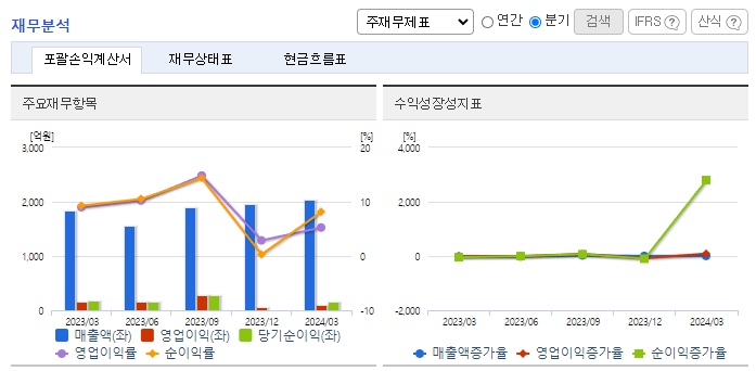 -2024년 3월 전년동기 대비 연결기준 매출액은 10.5% 증가, 영업이익은 35.5% 감소, 당기순이익은 1.7% 감소. 동사는 Gas 공급장치의 자동화, CCSS 공급장치의 차별화, 신규 사업의 확장에 중점을 두고 지속적으로 연구개발 투자를 증대시킬 계획임. 글로벌 배터리 업체 두 곳에 2025년부터 새롭게 동사 제품을 공급하게 되며, 이로 인해 생산과 매출이 크게 늘어날 것으로 예상됨.