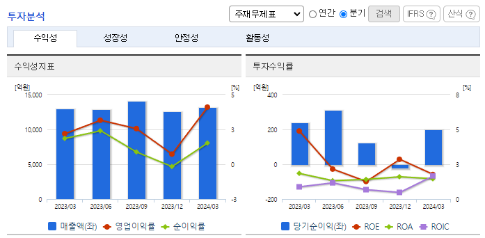-2024년 3월 전년동기 대비 연결기준 매출액은 1.1% 증가, 영업이익은 88.8% 증가, 당기순이익은 52.5% 감소. 해외 가공식품 시장은 전 세계적으로 K-Food에 대한 관심이 높아지면서, 다양한 한국 식품들의 출시가 증가로 인한 수익구조 개선됨. 해외 법인은 꾸준히 현지 식품 업체와 협업하면서 한국 음식의 세계화는 물론 B2B, B2C 품목의 포트폴리오 및 영업망을 확대 중임.
