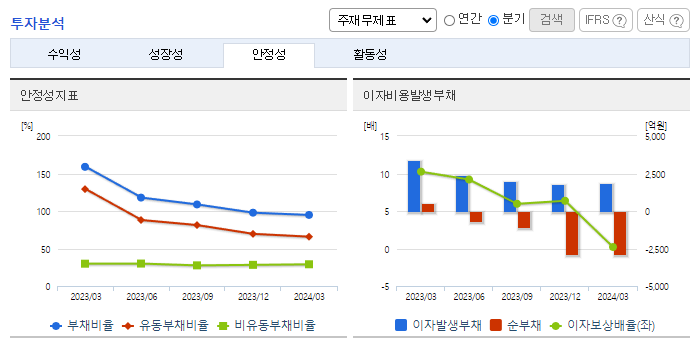 -2024년 3월 전년동기 대비 연결기준 매출액은 47.8% 감소, 영업이익은 98.8% 감소, 당기순이익은 96.2% 감소. 모회사의 주택 브랜드 '자이'와 '푸르지오'의 명성에도 불구하고 부동산 시장 침체와 원자재 가격 상승 등으로 영업이익이 크게 감소함. 최근에는 첨단산업을 중심으로 생산시설 투자가 증가함에 따라 동사의 매출구성의 큰 비중을 차지하는 건축 사업부문의 성장을 기대하고 있음.