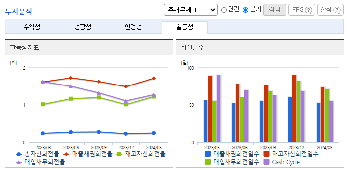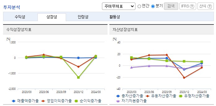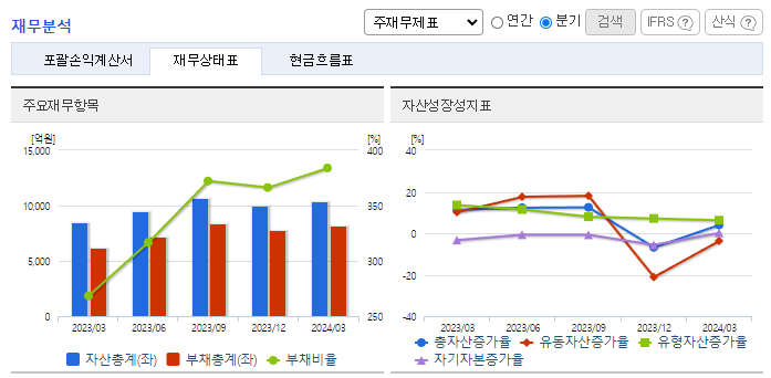 -2024년 3월 전년동기 대비 연결기준 매출액은 30.5% 증가, 영업이익 흑자전환, 당기순손실은 75.1% 감소. 22년~24년 집중된 국내외 시설 투자를 위한 부채의 증가로 이자비용이 급증해 세전이익과 순이익 적자는 지속되고 있음. 가전 주요 고객사 모두 물량 회복이 진행 중이며, 미국 법인의 공급 모델 확대와 전기차 부품, 태양광 모듈러 등 자동차/건재 부문의 실적 성장도 긍정적으로 보임.