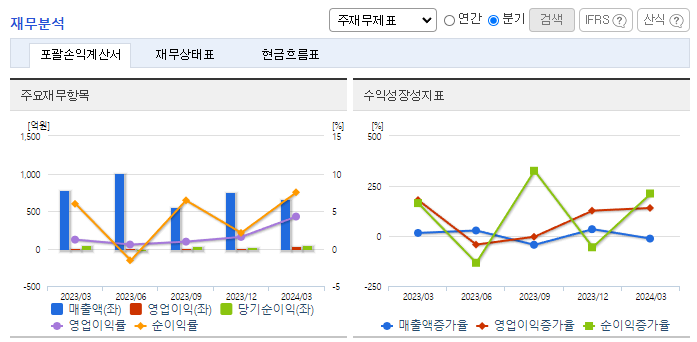 -2024년 3월 전년동기 대비 별도기준 매출액은 16.7% 감소, 영업이익은 200.4% 증가, 당기순이익은 4.6% 증가. 전체 매출액 중 98%를 차지하는 공사매출액이 전년동기 대비 감소하면서 전체 매출액 또한 감소하였지만, 건설용 자재 원가, 판관비 및 인건비 또한 감소하면서 영업이익은 전년동기 대비 증가. 고압가스 처리 공장, 물류창고 분야 등의 플랜트 사업 등 국내외에 많은 건축물을 건립하며 국내 건설업 발전에 기여함.