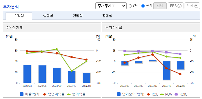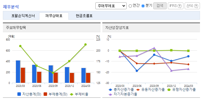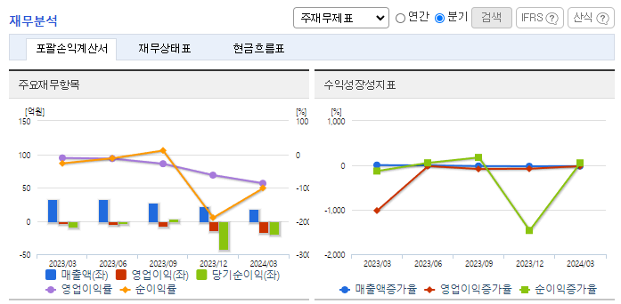 -2024년 3월 전년동기 대비 연결기준 매출액은 44.3% 감소, 영업손실은 338% 증가, 당기순손실은 106.9% 증가. 중국의 UMT와 자율주행 기술협력 MOU를 체결하는 등 신규 시장 창출로 Promotion 및 사업자 수주를 진행 중에 있음. mPERS 서비스와 관련해 북미향과 유럽향 단말기를 현지에서 테스트 중이며, 개발/인증을 거쳐 신규 시장 창출로 Promotion 및 사업자 수주를 진행중에 있음.