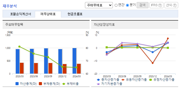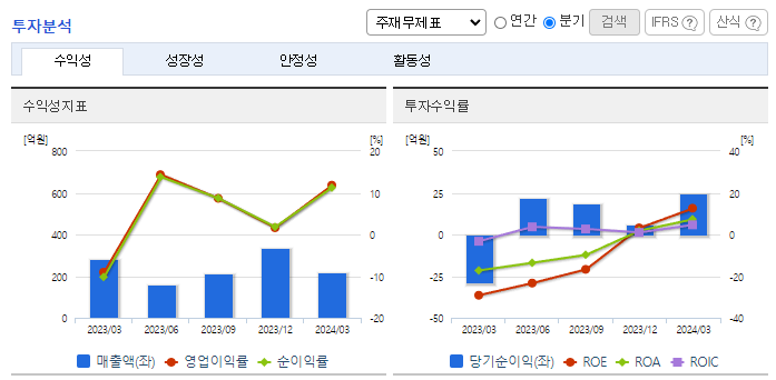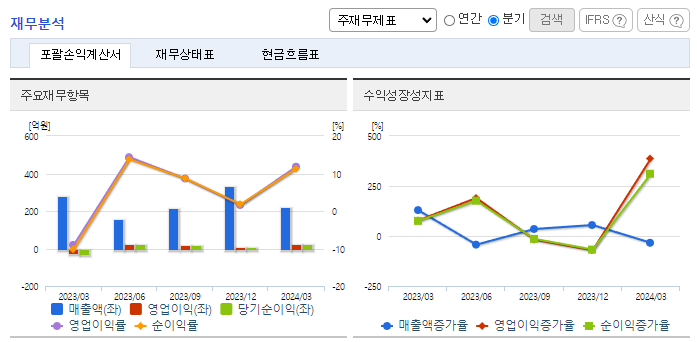 -2024년 3월 전년동기 대비 별도기준 매출액은 21.4% 감소, 영업이익 흑자전환, 당기순이익 흑자전환. PC방 업황 개선에 따른 게이밍기어 교체수요에 힘입어 고부가 제품의 매출 증가와 전통적인 신학기 효과가 영향을 미치며, 실적 호조를 이끌었음. 매입·납품구조 효율화를 통한 원가율 개선도 영업이익 확대의 주요 원인이며, 소형가전을 판매하는 뉴라이프 가전부문의 성장도 영업이익 개선에 도움이 되었음.