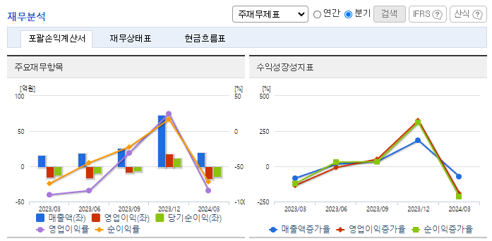 -2024년 3월 전년동기 대비 별도기준 매출액은 18.7% 증가, 영업손실은 10.8% 증가, 당기순손실은 14.6% 증가. 매출액은 성장했지만, 매출원가와 판관비가 28.2%, 8.8% 증가하면서 영업이익에 악영향을 줌. 국내 주요 매출처는 SKT, SKB, KT, LG U+, 일반기업, 공공기관 등이며, 국내 매출 비중이 80% 임. MCPTT 솔루션의 주요 판매처인 해외 시장의 매출 비중은 20% 임.