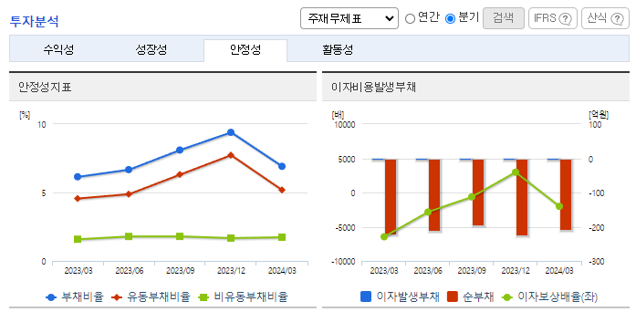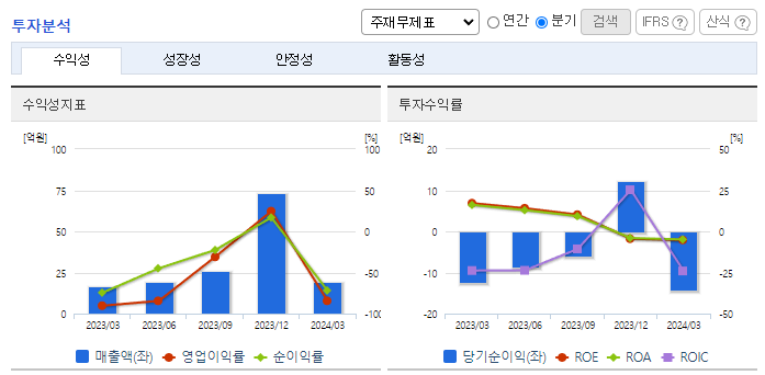 -2024년 3월 전년동기 대비 별도기준 매출액은 18.7% 증가, 영업손실은 10.8% 증가, 당기순손실은 14.6% 증가. 매출액은 성장했지만, 매출원가와 판관비가 28.2%, 8.8% 증가하면서 영업이익에 악영향을 줌. 국내 주요 매출처는 SKT, SKB, KT, LG U+, 일반기업, 공공기관 등이며, 국내 매출 비중이 80% 임. MCPTT 솔루션의 주요 판매처인 해외 시장의 매출 비중은 20% 임.