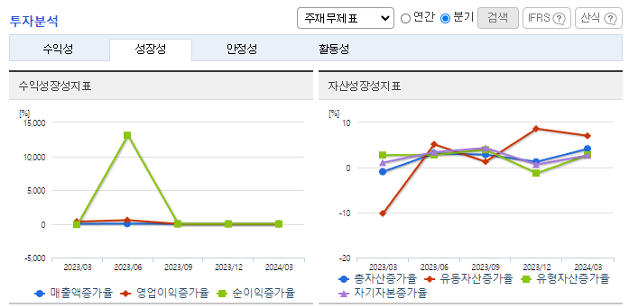 -2024년 3월 전년동기 대비 연결기준 매출액은 24.7% 증가, 영업이익은 298.9% 증가, 당기순이익은 334.3% 증가. 시험인증 부문은 고사양 무선제품(5G 휴대폰 등), 기지국, 중계기 등의 정보통신기기와 배터리 관련 시험매출이 증가함. 시험인증산업은 국가의 의무에서 시작되어 법령과 규정에 따라 반드시 존재해야 하는 필수 산업이며, 다른 대체 시장이 존재하지 않음.