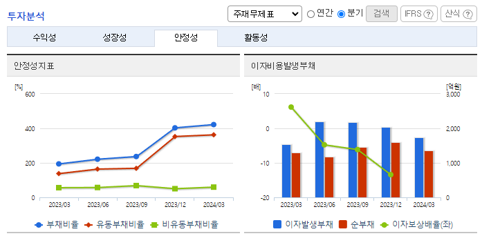 -2024년 3월 전년동기 대비 연결기준 매출액은 34.1% 감소, 영업이익 적자전환, 당기순이익 적자전환. 정부 SOC 예산이 감소하고, 지자체 및 공기업 투자여건이 악화되는 등 공공부문 발주물량이 감소함에 따라 매출이 감소하고 적자전환함. 해외건설사업은 현지 건설 및 수주를 위해 설립하였으나 현재 진행 중인 사업은 없으며 현지해외법인들은 휴업상태로 청산 절차 진행 중.