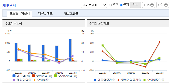 -2024년 3월 전년동기 대비 연결기준 매출액은 19.6% 증가, 영업이익은 46.3% 감소, 당기순이익은 76.2% 감소. 23년 12월에 인수한 베트남의 'TS Care'를 종속회사로 편입하여 의약품 유통체인이 신규 영업부문이 추가되었고 매출이 당분기부터 인식됨에 따라 매출액이 증가함. 신약개발의 주요 분야는 항감염제, 항암제, 호흡기계, 면역염증성질환 등의 치료제 개발에 대한 연구를 집중하고 있음.