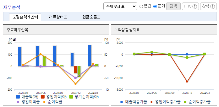 -2024년 3월 전년동기 대비 연결기준 매출액은 8.9% 증가, 영업이익은 269.2% 증가, 당기순이익은 123.7% 증가. FPC는 매출의 장기계약이라는 특징을 보이고 있으며 최종 수요 고객의 대부분은 LG계열, 삼성계열로 안정적인 매출 구조를 보유함. 성장을 위해 영업 강화 및 시제품 개발을 추진하는 등 일본과 중국 등지의 해외 신규고객사 확보 및 매출 비중을 증대시키고 함.