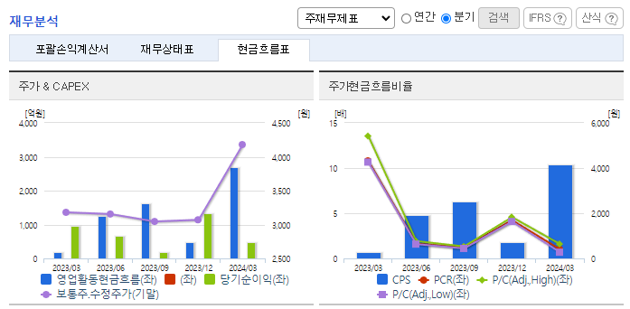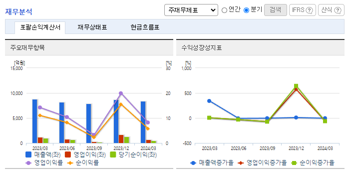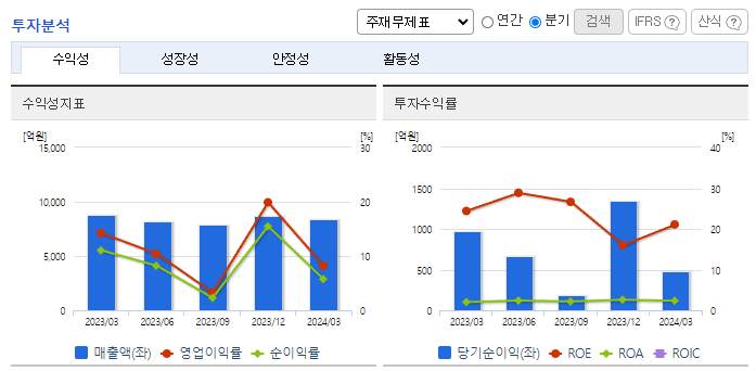 -2024년 3월 전년동기 대비 별도기준, 영업이익은 44.7% 감소, 당기순이익은 50.3% 감소. 1분기 보험영업수익은 6,376억 원, 보험서비스비용은 4,976억 원으로 보험손익은 1,399억 원. 투자영업수익은 2,015억 원, 투자영업비용은 2,726억 원으로 투자손익은 -711억 원임. 동사는 업계 대비하여 장기보험의 비중이 높은 구조를 가지고 있으며, 설계사 조직의 정착률은 업계 평균대비 지속적으로 양호한 수치를 기록 중임.