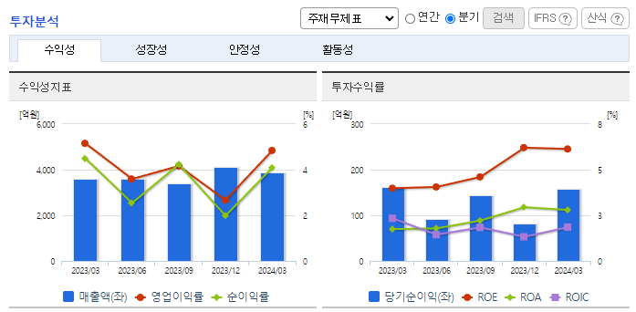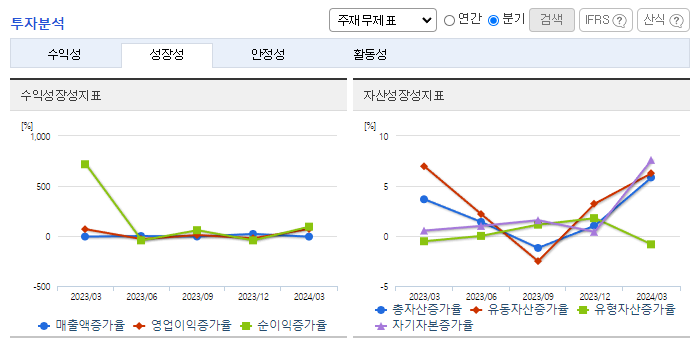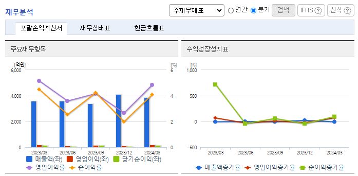 -2024년 3월 전년동기 대비 연결기준 매출액은 7.4% 증가, 영업이익은 0.9% 증가, 당기순이익은 4.3% 감소. 부동산 임대 사업에서 엘리베이터 교체 및 지하상가에 대한 시설투자 및 입주 상가의 고급화 등 고객만족도 향상을 위한 노력으로 신규고객 유치를 통한 공실 감소와 매출이 증가. 해외 판매법인의 설립유지 및 국별 Agency 및 Distributor를 운영하고 있음.