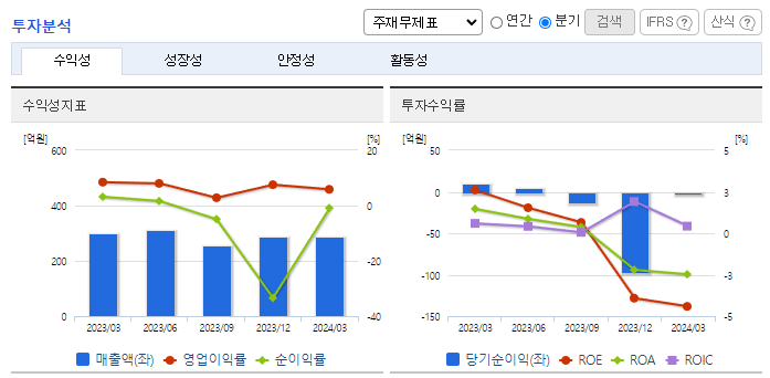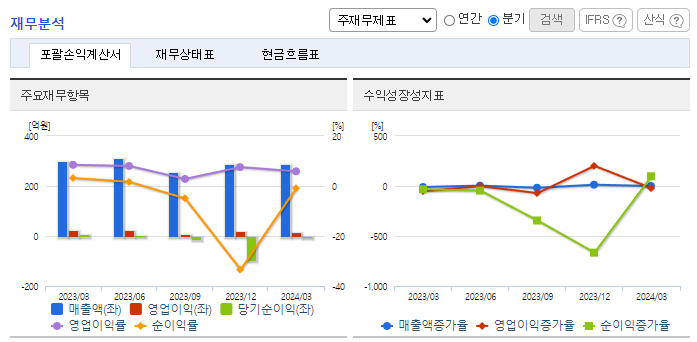 -2024년 3월 전년동기 대비 별도기준 매출액은 3.1% 감소, 영업이익은 32.7% 감소, 당기순이익 적자전환. 2024년 1분기 테마파크사업부의 매출은 벚꽃 개화 시점이 늦어져 전년동기 대비 6% 하락함. 주얼리사업부에서도 실적 방어에 주춤하며 매출이 전년동기 대비 감소함. 주얼리 사업의 경우 주 고객들의 정보 획득 채널이 온라인임을 감안해 온라인 유통채널을 지속적으로 발굴하고 있음.