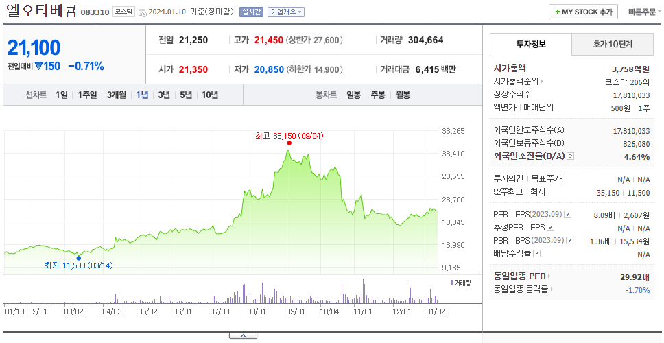 엘오티베큠 주식, 주가, 기업분석, 실적 분석