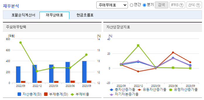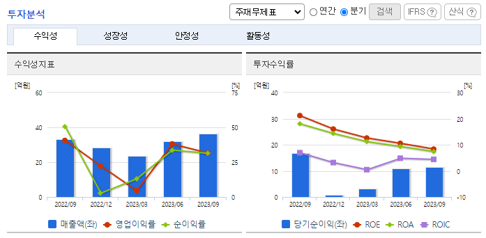 -2023년 9월 전년동기 대비 연결기준 매출액은 2.9% 감소, 영업이익은 39.2% 감소, 당기순이익은 40% 감소. 매출이 감소한 반면 매출원가는 증가하였고, 판매관리비 또한 증가하여 수익은 감소, 비용은 증가하는 양상을 띔. 미국뿐만 아니라 유럽, 일본 등에서 전년 대비 30% 이상의 수주를 달성하고, 2022년 대비 약 130% 증가한 수출 물량을 확보한 상태로 수주량도 점점 늘어날 것으로 예상함.
