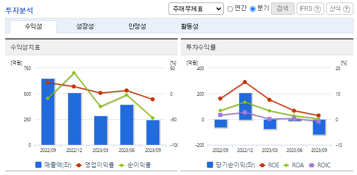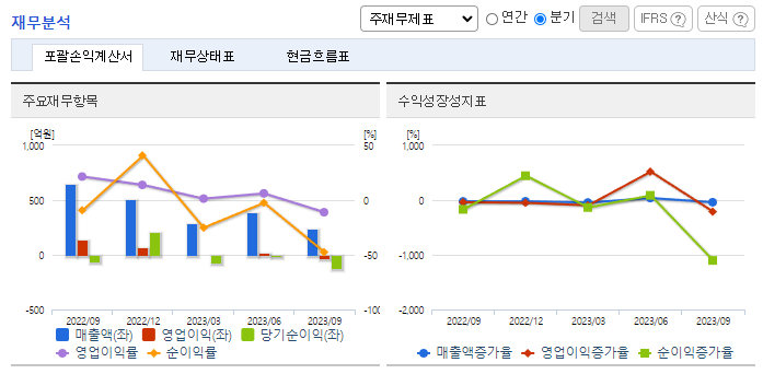 <영업이익 감소 및 당기순이익 적자전환>